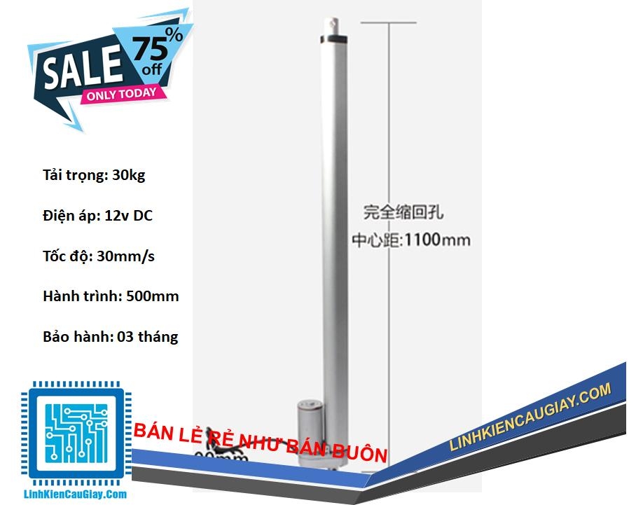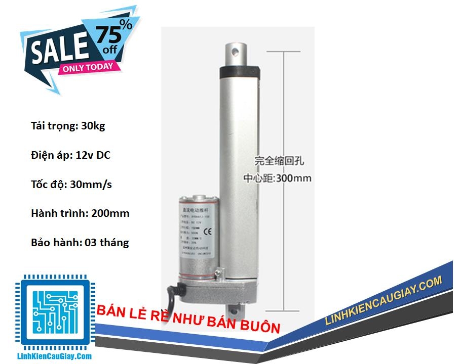 Xi lanh điện 12VDC tốc độ 30mm/s Hành trình tùy chọn
